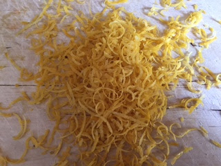 Stir in the gelatine, allow to dissolve and if you like you can sieve it to remove the zest though I left that in. Allow to cool and pour into the pastry case and leave in the fridge overnight to set.